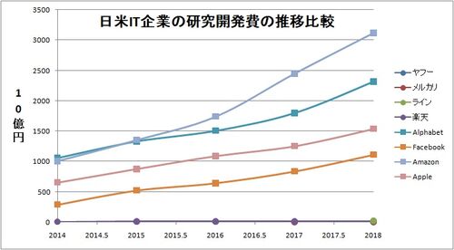 先日ヤフーとLINEの統合が発表されました。 今朝のNHKニュースで「欧米の大手IT企業との競争で研究開発費が全く間に合わないのが、統合の大きな理由。一桁以上の差がある。」と話されていました。 1. 研究開発費の日米比較 実際にどれくらいあるのか気になっ…